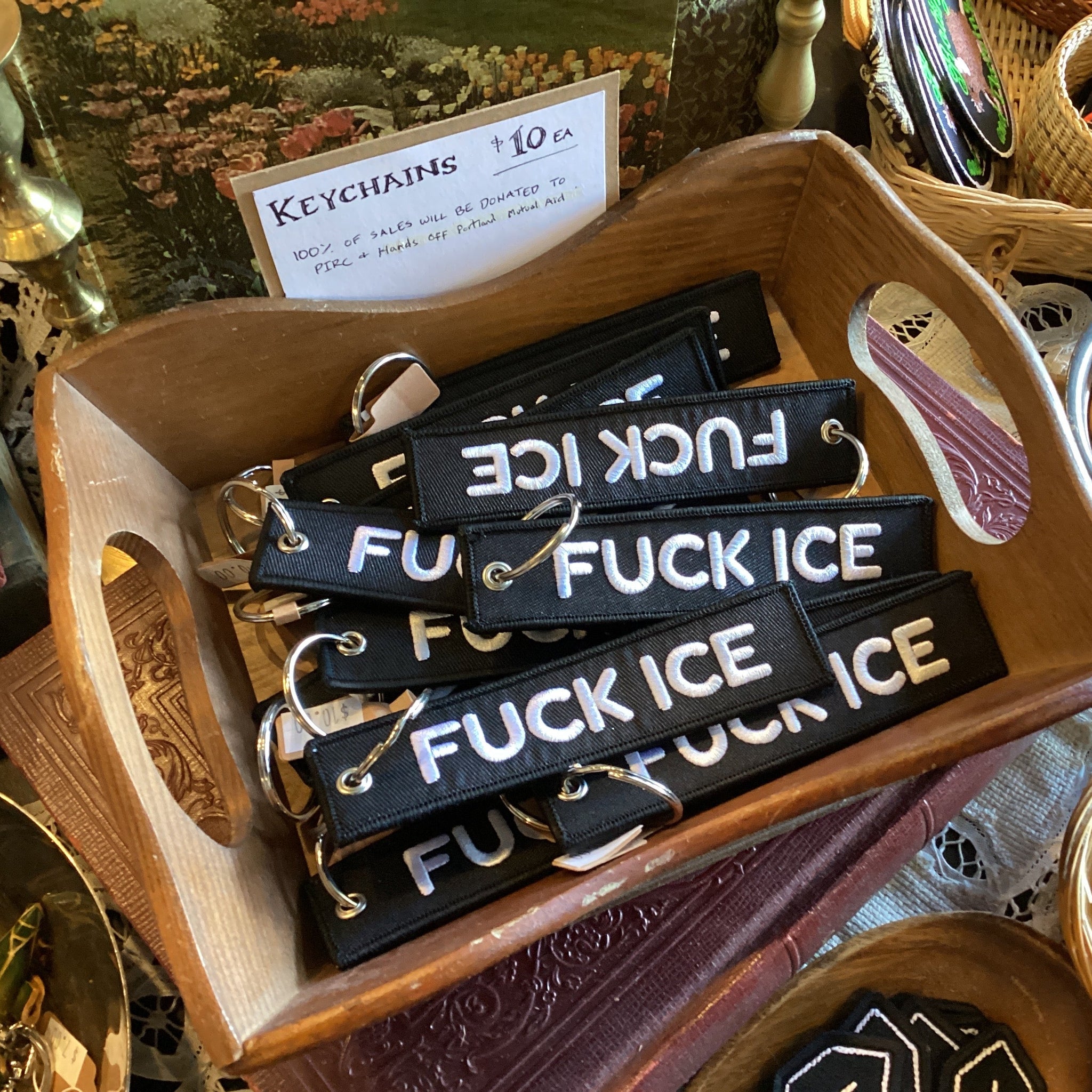 100% of sales from these keychains will be donated to PIRC (Portland Immigrant Rights Coalition) and Hands Off Portland Mutual Aid.
