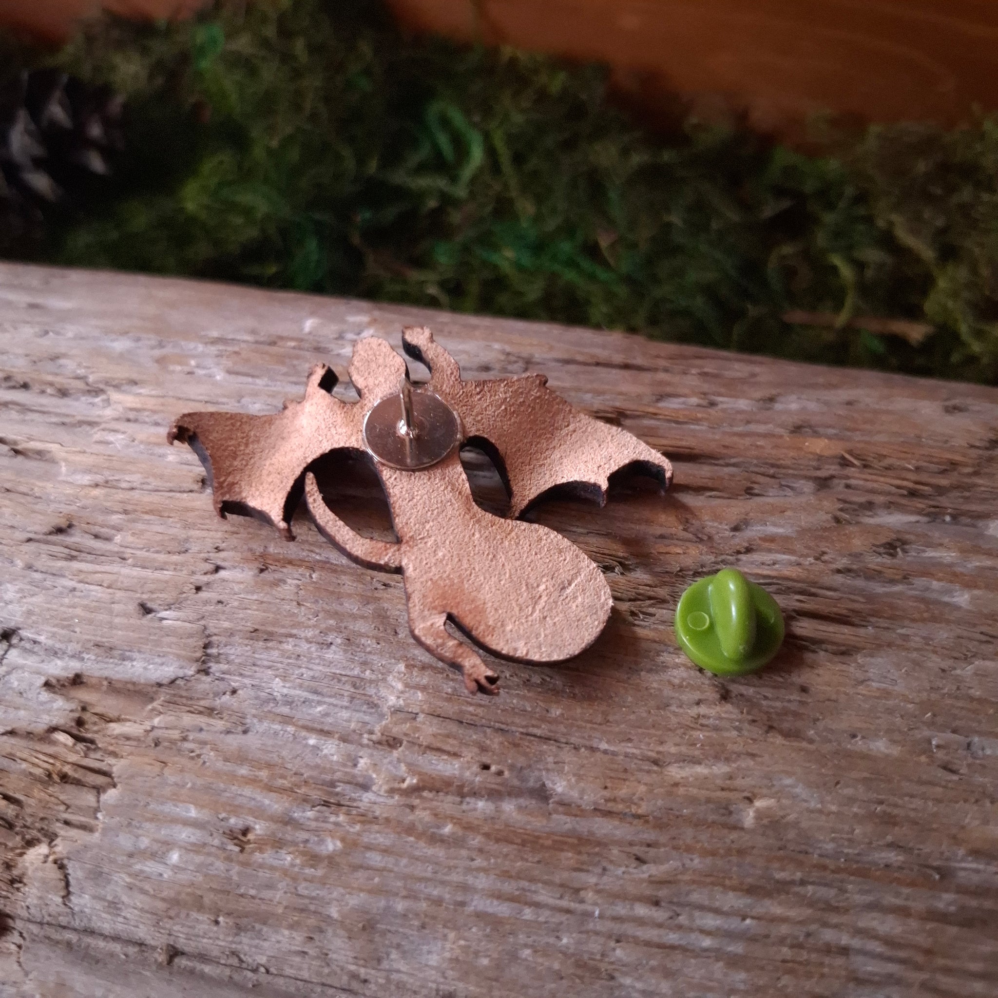 These pins are made from real leather; hand shaped, painted and dyed by hand.